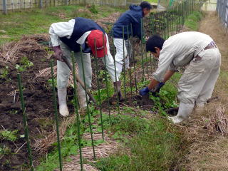 | 徳地地域の振興作物であるやまのいもの栽培研修を行います。 |