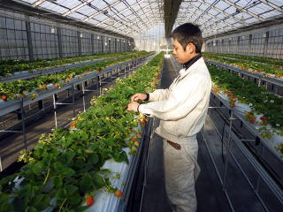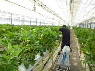 | 高設栽培システムで、サチノカとカオリノの栽培研修を行います。 |